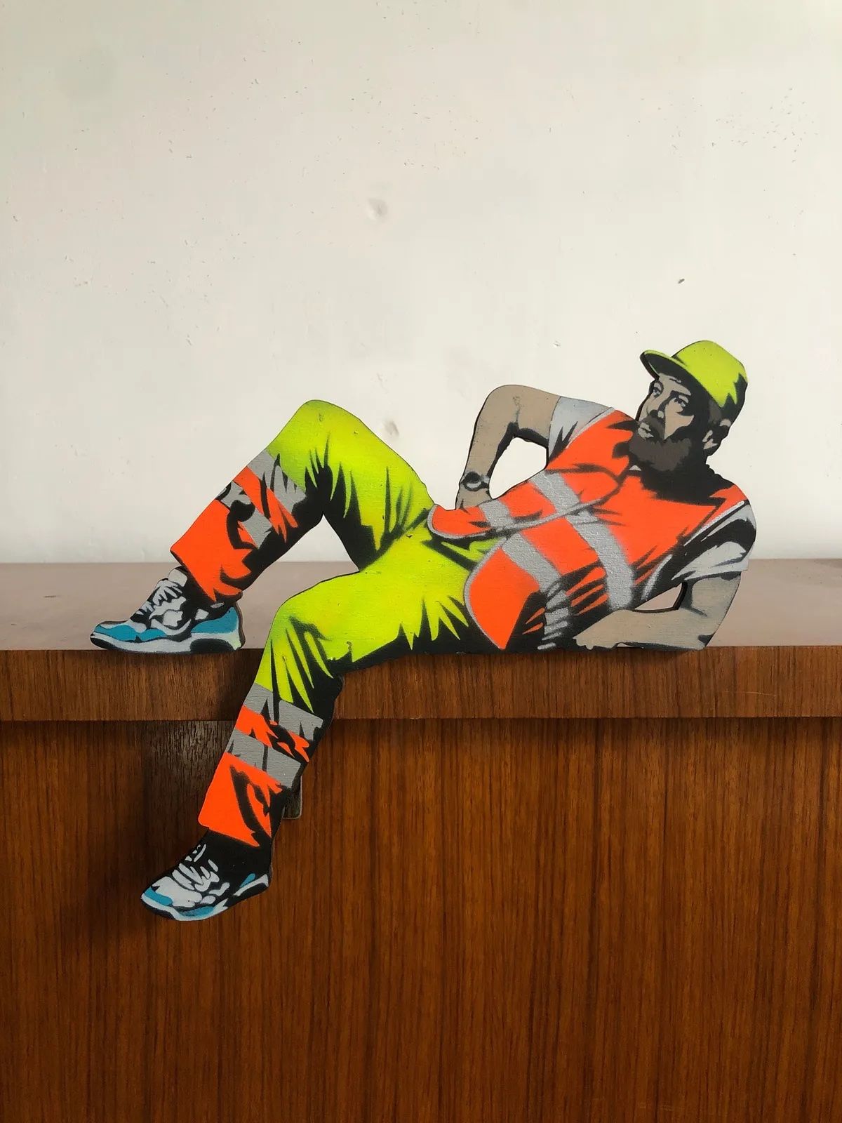 AcheterSculpture réalisée à l'aide d'un pochoir sur un bois par l'artiste Jaune, exposé par la Buronzu Gallery lors de l'Affordable Art Fair à Bruxelles.