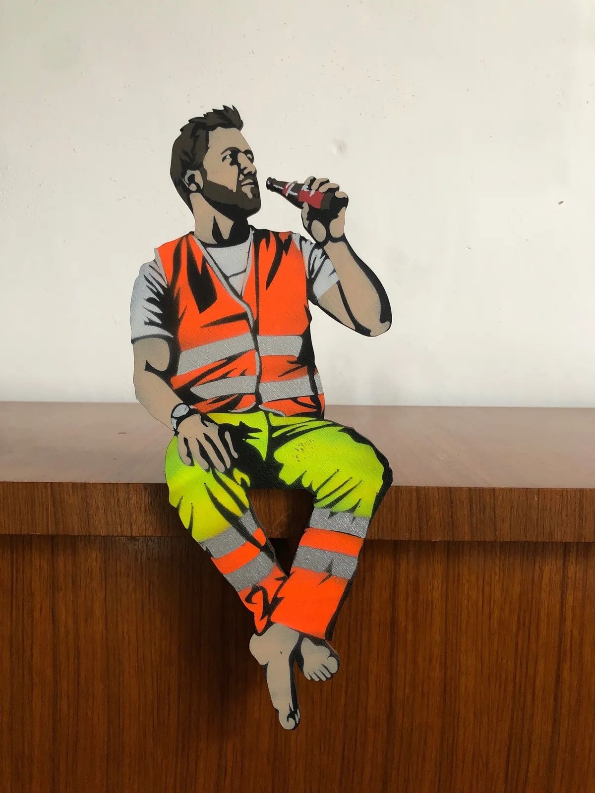 AcheterSculpture réalisée à l'aide d'un pochoir sur un bois par l'artiste Jaune, exposé par la Buronzu Gallery lors de l'Affordable Art Fair à Bruxelles.