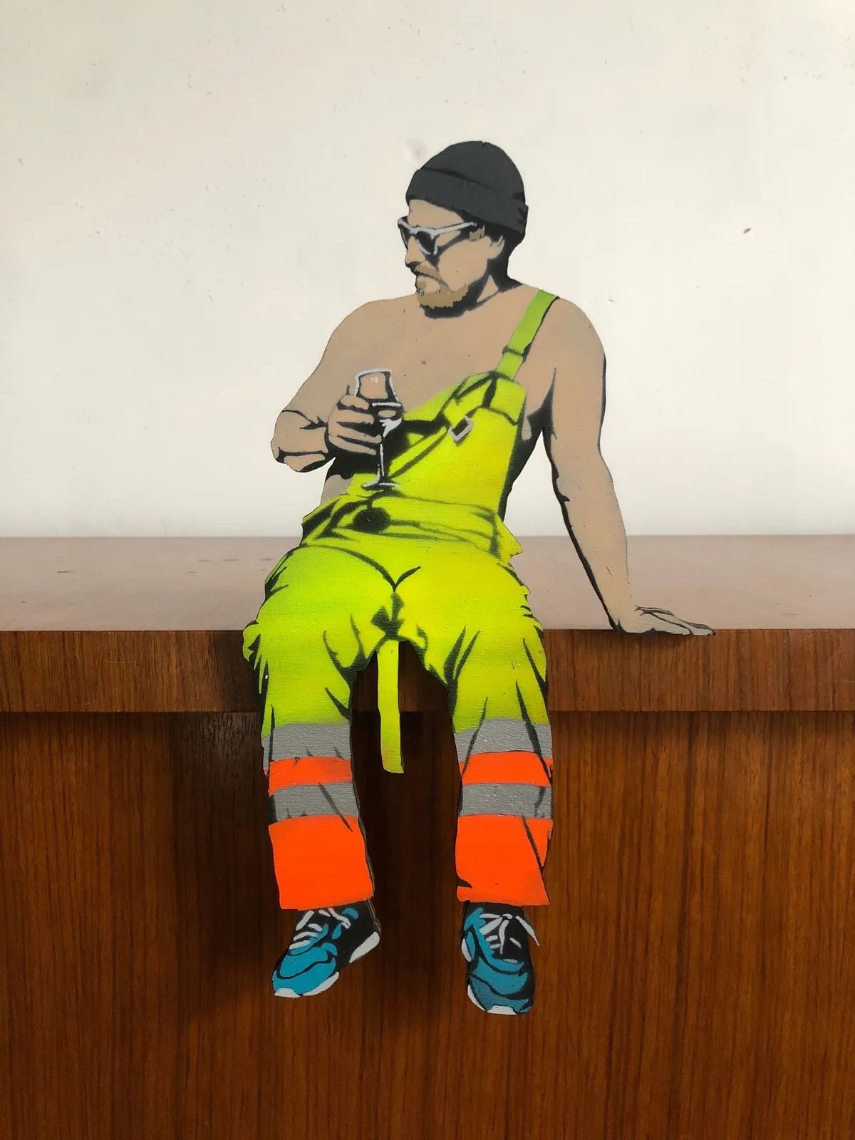AcheterSculpture réalisée à l'aide d'un pochoir sur un bois par l'artiste Jaune, exposé par la Buronzu Gallery lors de l'Affordable Art Fair à Bruxelles.