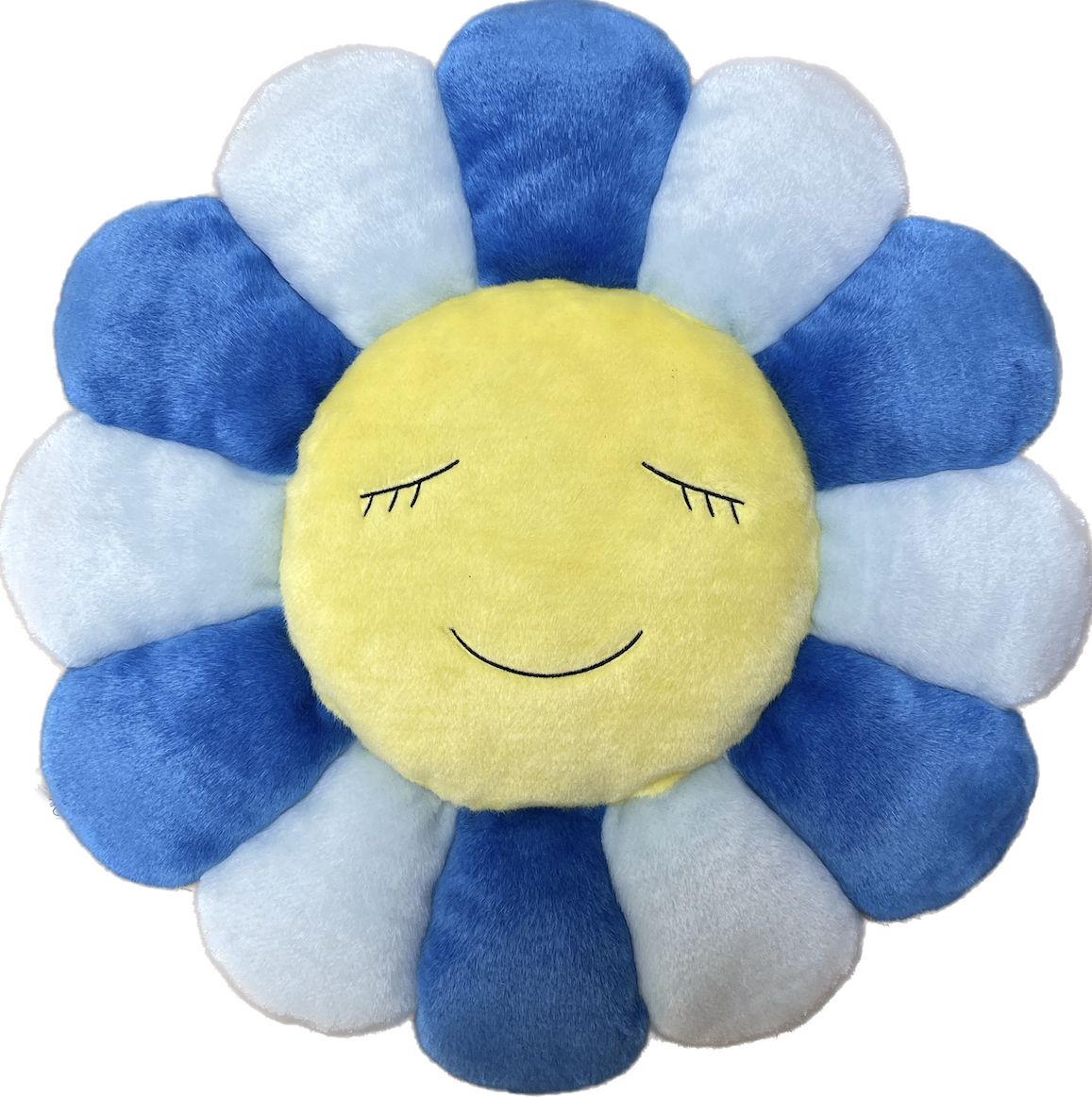 - Technique Flower-shaped polyester plush and stuffing cushion with double-sided face and embroidered details on both sides