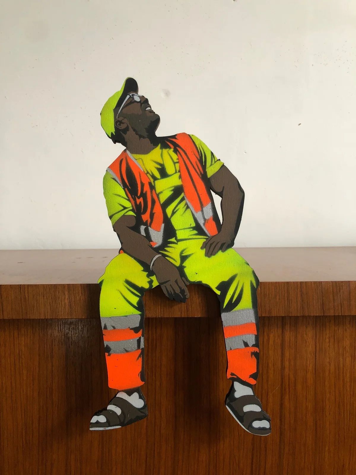 AcheterSculpture réalisée à l'aide d'un pochoir sur un bois par l'artiste Jaune, exposé par la Buronzu Gallery lors de l'Affordable Art Fair à Bruxelles.