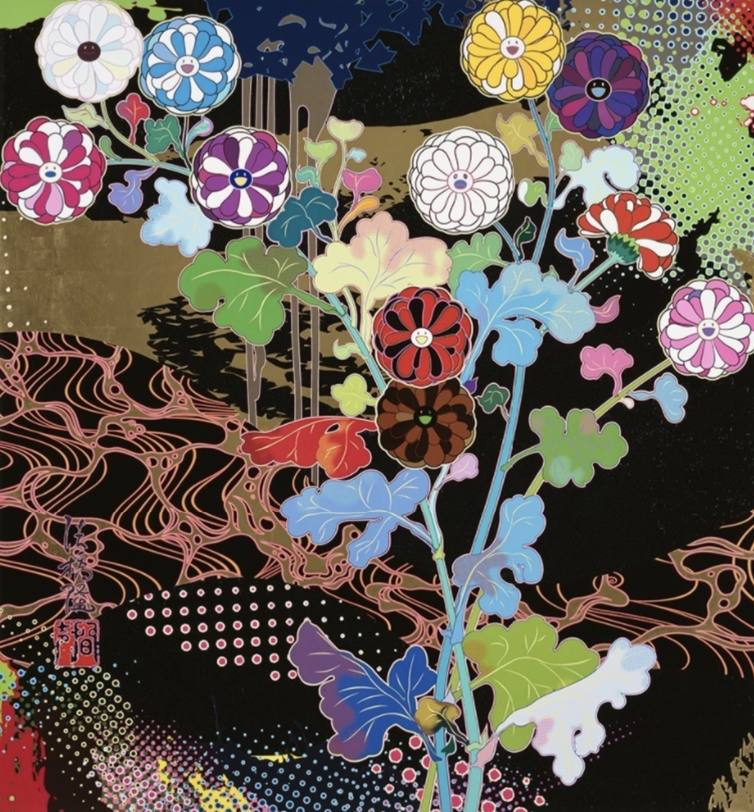 Cette œuvre est signée Takashi Murakami, un artiste japonais de renommée mondiale. Peintre et sculpteur japonais, il est notamment connu comme l’initiateur du mouvement d’art contemporain, le Superflat, qui trouve ses influences dans les animes, les mangas et la pop-culture japonaise. Les œuvres de Takashi Murakami sont un voyage entre la tradition et la modernité. Ses fleurs colorées aux visages souriants sont sans doute sa marque de fabrique la plus reconnaissable.
