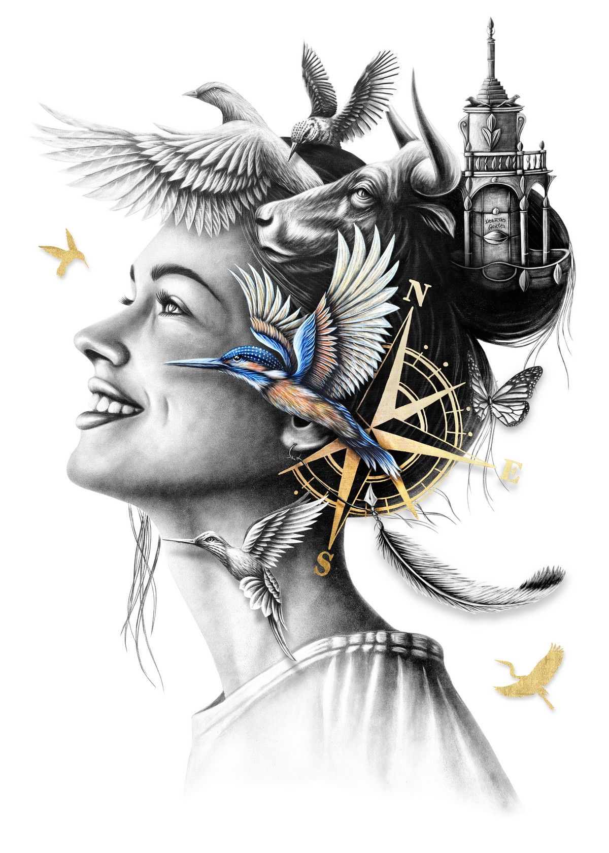- Technique Digigraphie + feuille d'or 24kt