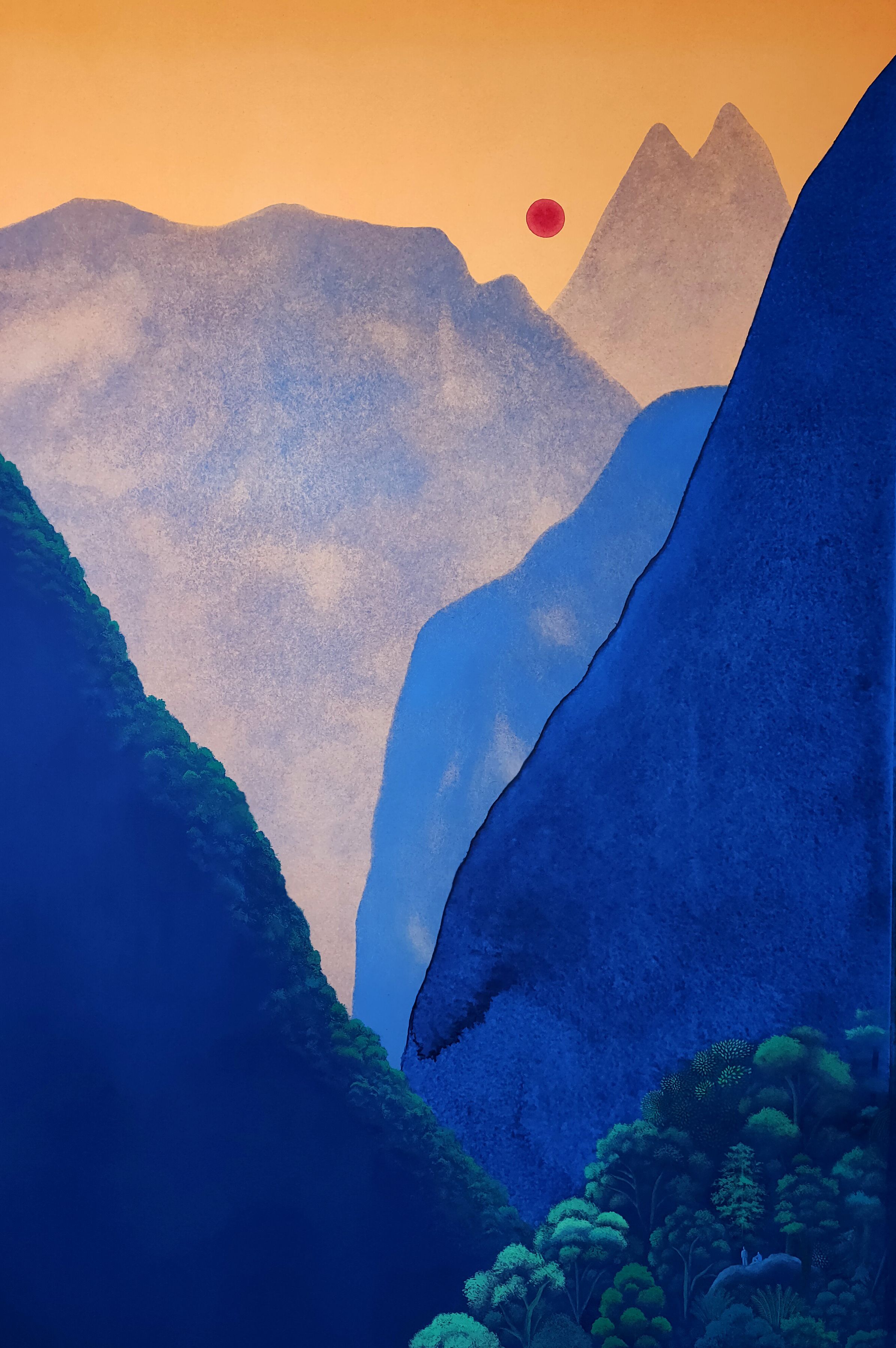 Œuvre de Jean Mallard mêlant aquarelle et gouache. Inspiré par une marche dans les Pyrénées, il travaille autour de grands espaces silencieux, souvent nocturnes ou crépusculaires, proches du réalisme magique. Ses peintures explorent l’équilibre entre plein et vide, lumière et obscurité.