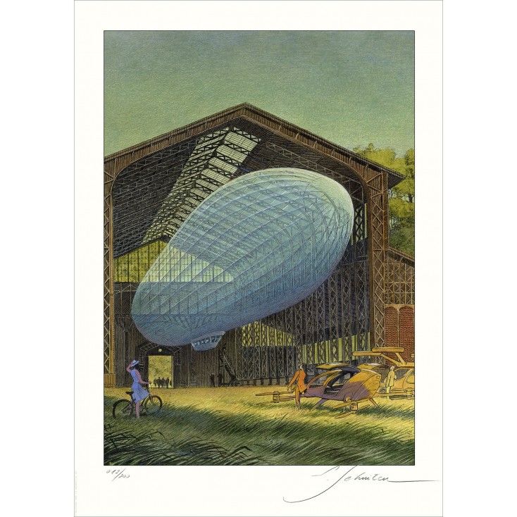 AcheterDans Le Hangar Y, François Schuiten saisit un instant de douce émerveillement : un dirigeable lumineux flotte dans l’immense structure, tandis que des visiteurs déambulent entre passé et futur. Présentée par la Buronzu Gallery, l’œuvre célèbre la passion de Schuiten pour les architectures visionnaires et les atmosphères poétiques.