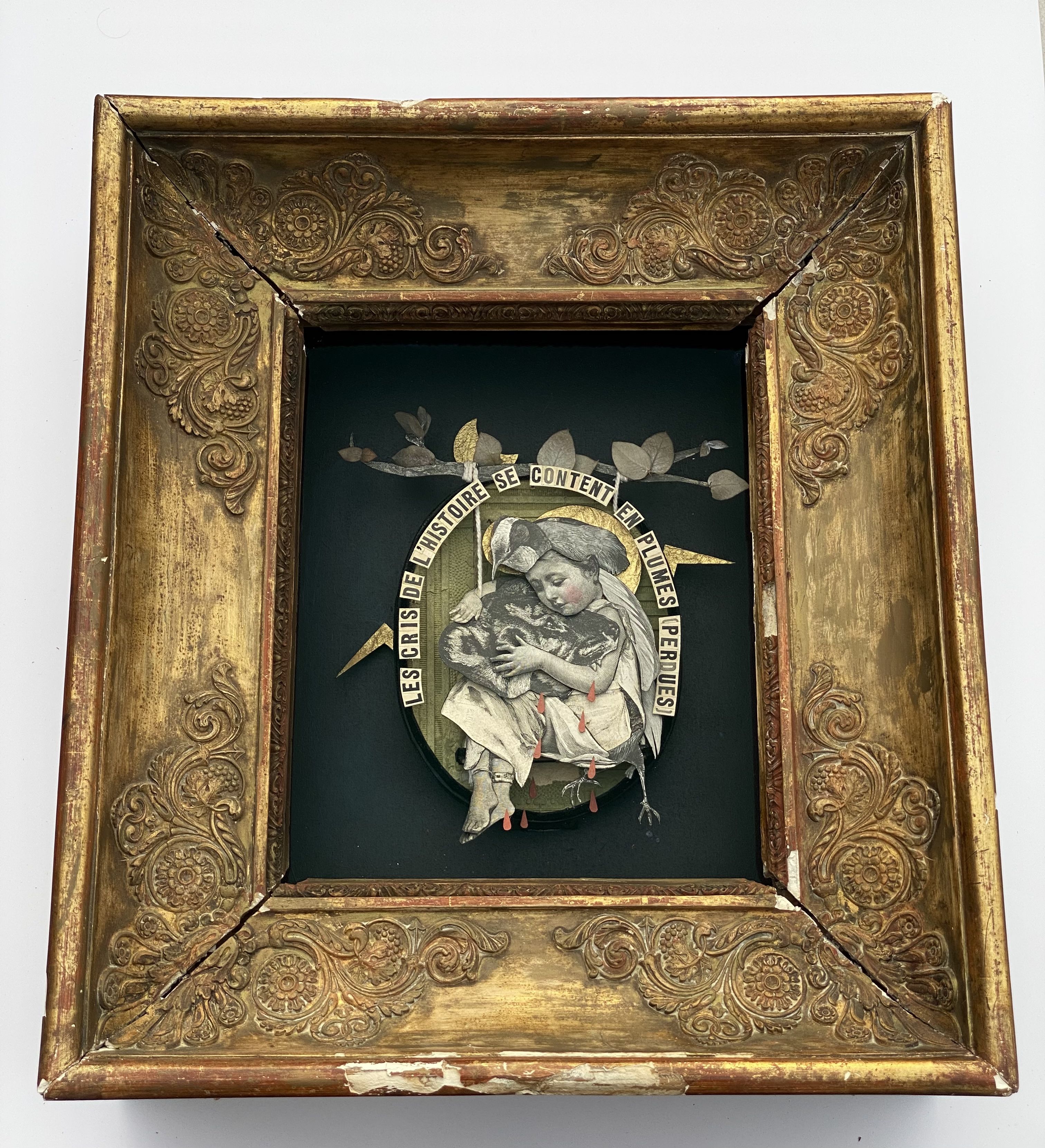 - Technique Assemblage manipulable de matières anciennes (gravures, papier, carton, métal, tissus)