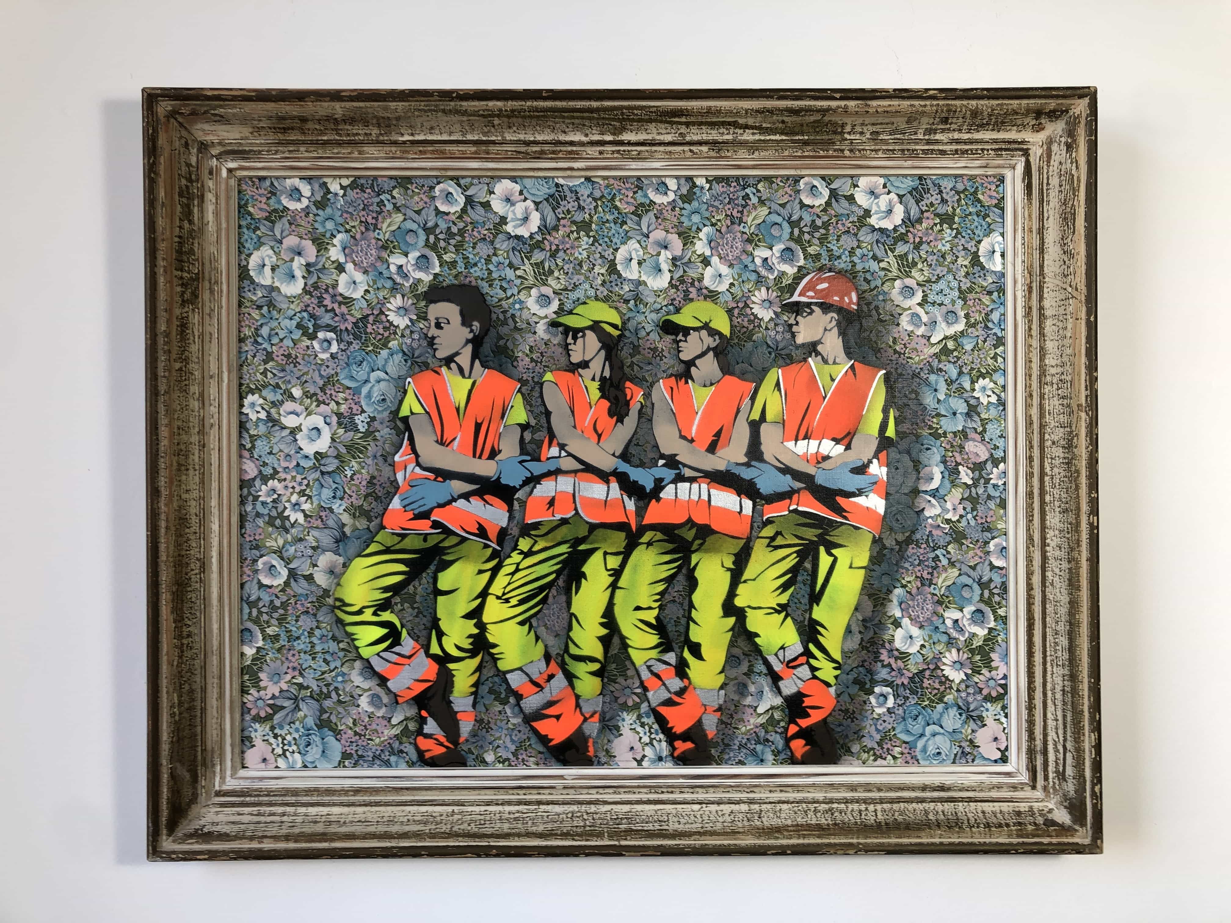 AcheterVendue avec encadrement. Dans un cadre ancien patiné, une série de figures se tient presque à l’unisson, leurs postures subtilement différenciées. Le fond ornemental dissout l’individualité dans le rythme, évoquant une présence collective et silencieuse.