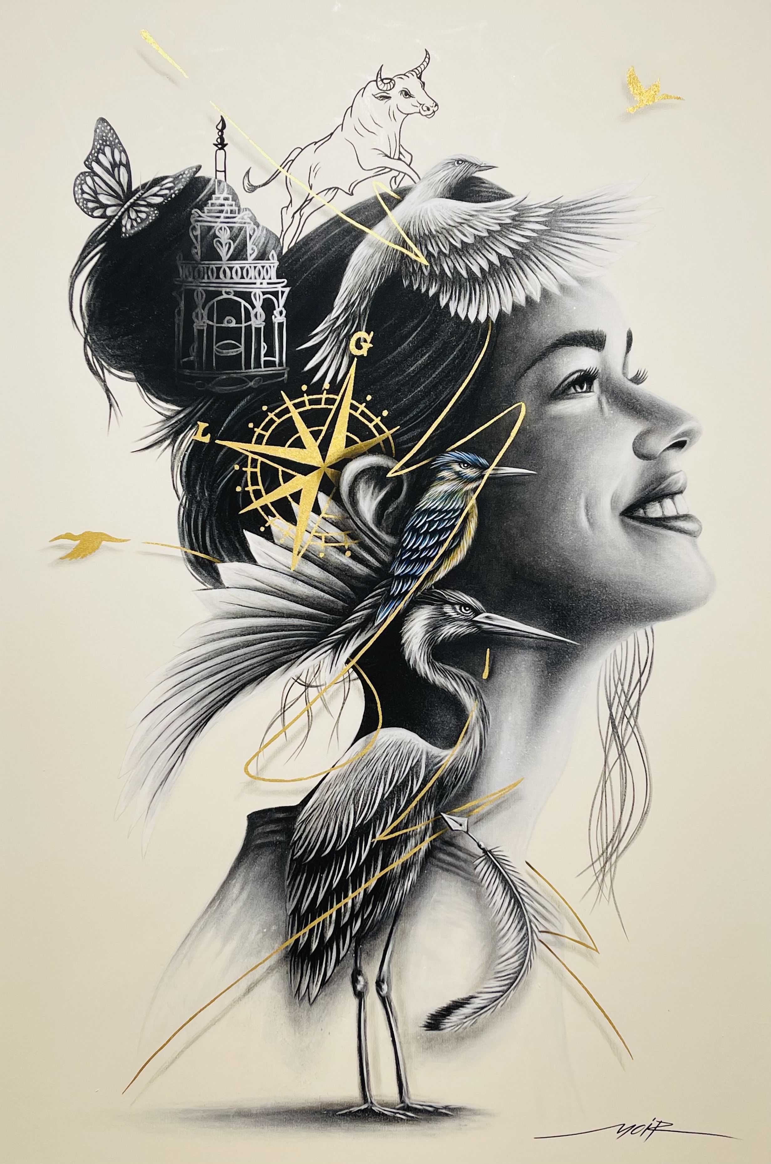 - Technique Peinture acrylique et feuille d'or 24kt