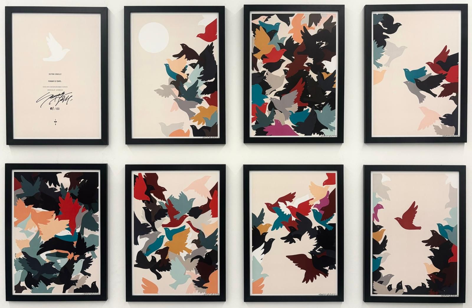 AcheterLot de 8 Offsets signés par SozyOne, dans un coffret personnalisé. Réalisé pour l'exposition "Pendant ce temps...". Notre galerie d'art, située à Liège, s'est associée pour cette exposition avec la prestigieuse marque Breitling et la Maison Desitter. Un véritable voyage dans le temps, avec comme fil conducteur, pour l'artiste Sozyone, les oiseaux, typique de l'univers de l'artiste.