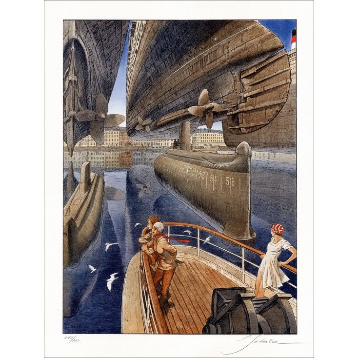 AcheterDans Retour à Cherbourg, François Schuiten déploie ses techniques raffinées d’encre et d’alugraphie, une œuvre présentée par la Buronzu Gallery.