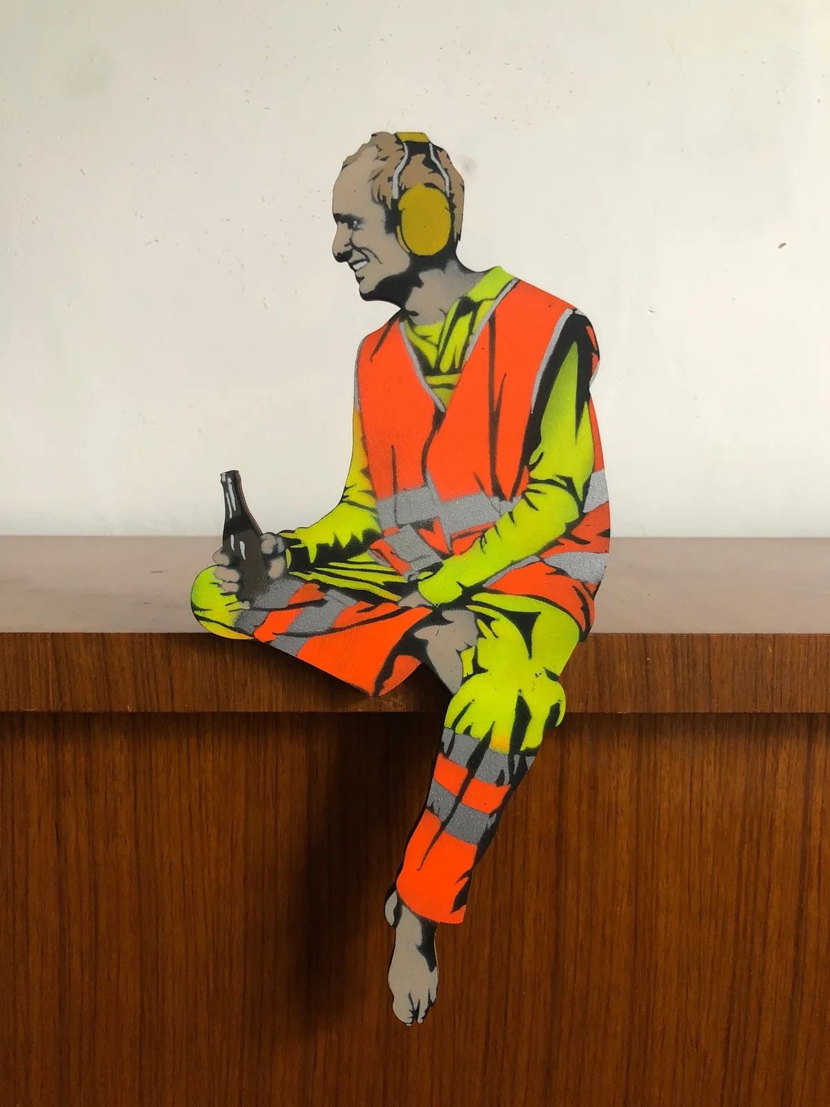 AcheterSculpture réalisée à l'aide d'un pochoir sur un bois par l'artiste Jaune, exposé par la Buronzu Gallery lors de l'Affordable Art Fair à Bruxelles.